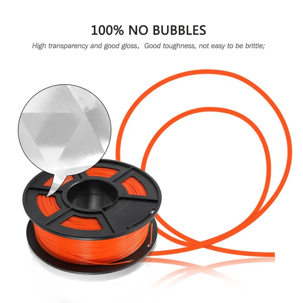 Характеристики нити PETG:1. Защита окружающей среды и нетоксичность;2. Низкая усадка; Яркий цвет; Высокая прозрачность и хороший блеск.3. Хорошая прочность, не легко быть хрупким, хорошая стойкость к кислотам и щелочям, отличная, устойчивость к погодным условиям и хорошая адгезия.4. Хорошая стабильность размеров, отсутствие трещин и деформации.Подходит для всех типов принтеров FDM3D, подходит для совместной печати всех видов широко используемых моделей, ремесел, промышленных частей, рекламных слов и т. д.Параметры продукта