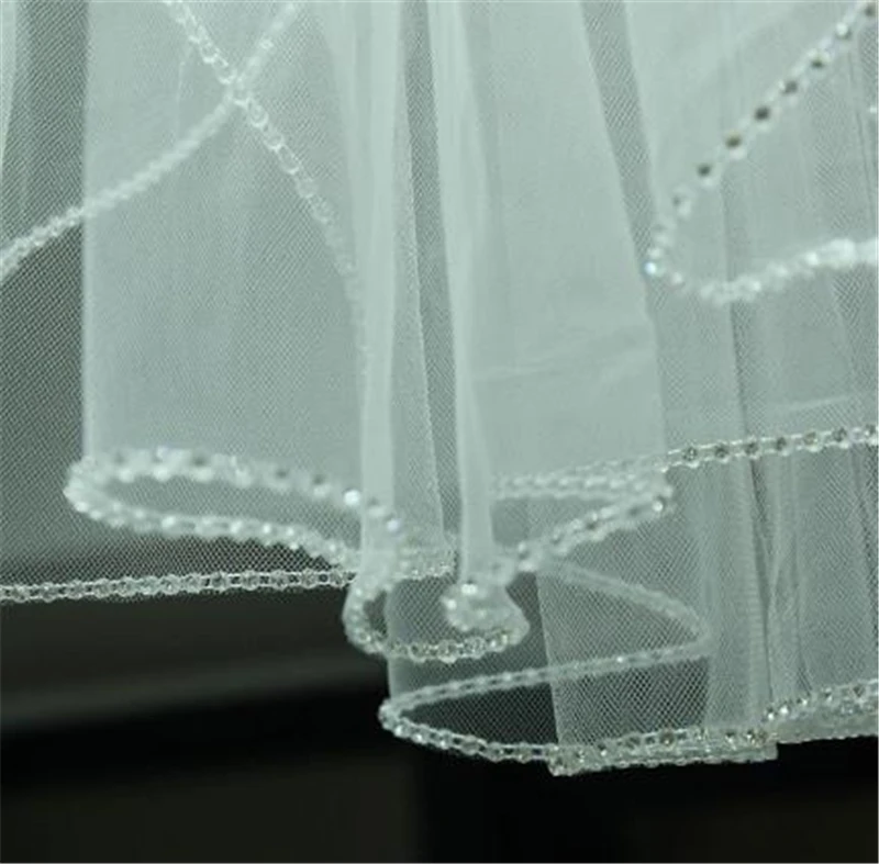 Однослойная короткая свадебная фата с гребнем, простая белая, цвета слоновой кости, Тюлевая Фата с жемчужинами и краями, свадебные аксессуары для волос, 2021