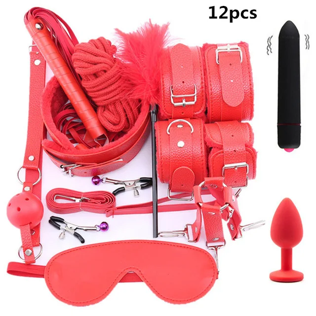 Интимные игрушки для женщин для взрослых и мужчин 12 шт., наручники, зажимы для сосков, плетка для шлепков, Металлические анальные пробки, вибратор, Анальная пробка, набор для бондажа