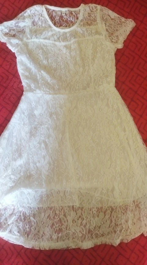 Женское кружевное платье-трапеция выше колена, Повседневное платье с круглым вырезом и коротким рукавом