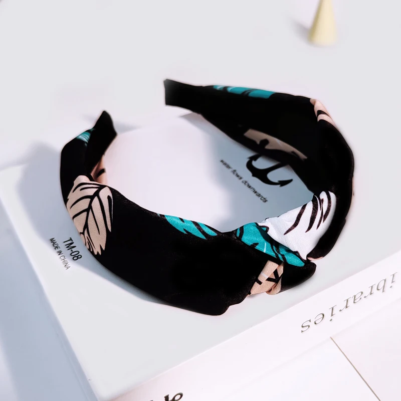 Повязка для волос в тропическом стиле женская, хлопковый обруч с принтом, с бантом, широкая лента для волос, аксессуары для волос для девочек FG099