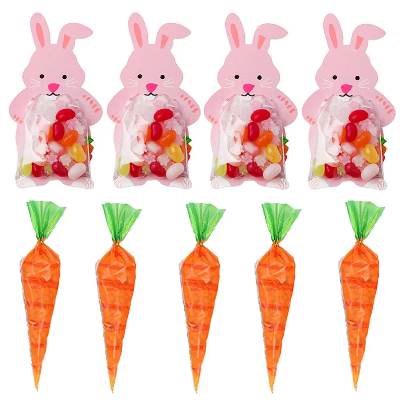 Пасхальный кролик пакет для конфет с открытки на день рождения Пасхальный кролик с морковкой конфетная сумка конусов Transprant Пластик мешок дети День рождения Декор