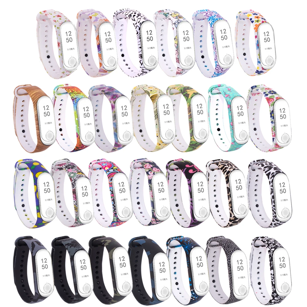 Ремешок сменный для Mi Band 34, силиконовый спортивный браслет с рисунком для смарт-часов Xiaomi mi Band 4