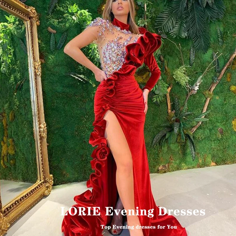 Арабское вечернее платье LORIE, бархатное платье-Русалка с оборками и высоким разрезом сбоку, вечернее платье для выпускного, стразы, 2021 Дубай