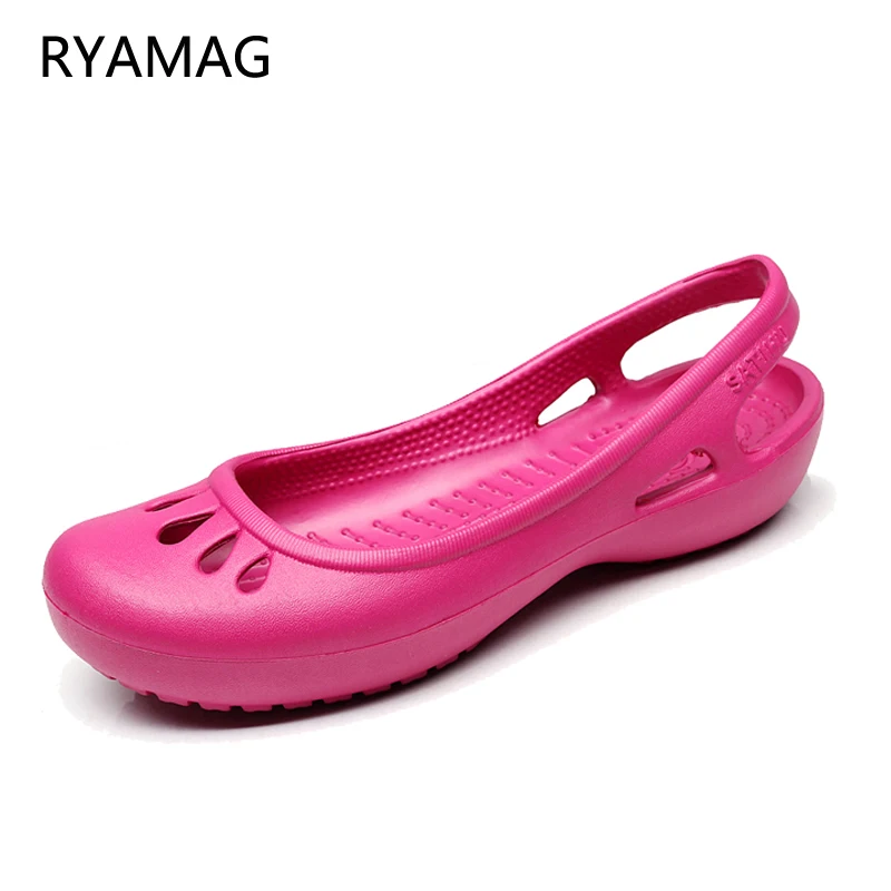 Сандалии-желе RYAMAG женские, Нескользящие пластиковые, тапки для сада, плоская подошва, водонепроницаемые, Эва, клоги, летняя обувь с перфорацией