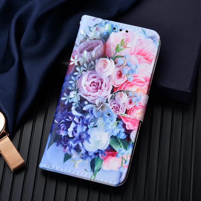 Кожаный чехол с мультяшными цветами для Xiaomi Redmi 9C, чехол для ...