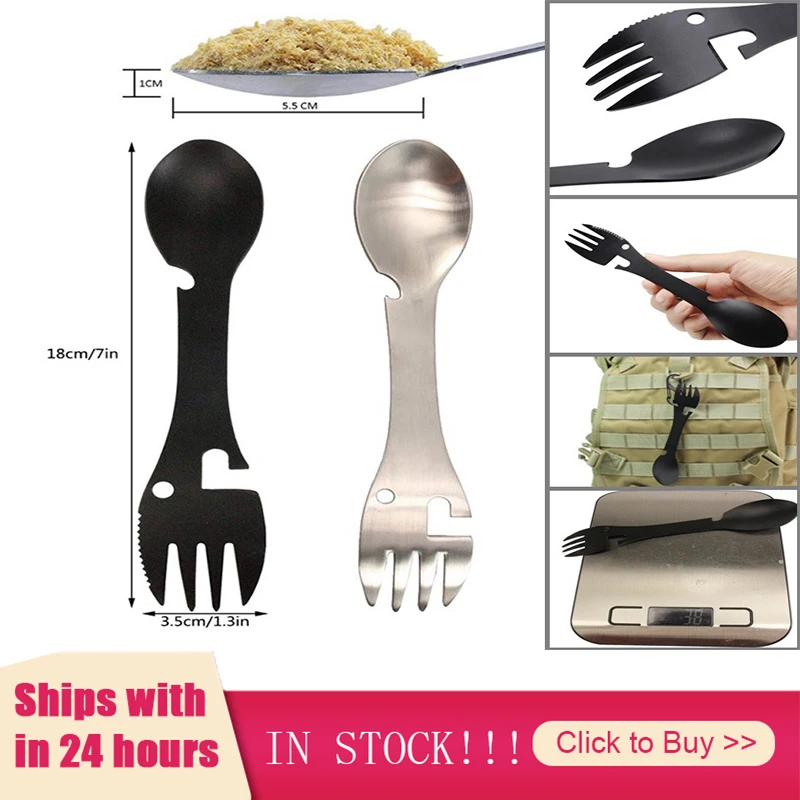 Нержавеющаясталь многофункциональная столовая ложка, вилка, открывалка для бутылок Консервный нож Открытый Кемпинг Портативный посуда, вилка, ложка один Кухня набор
