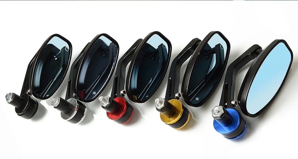 -100% абсолютно новые Aftermarket высококачественные торцевые зеркала-Материал: заготовка из алюминия-Цвет: черный с красным/синим/серебристым/золотым концом-Количество: одна пара-Размер: Размер стекла: 4"-Универсальный подходит для всех мотоциклов 7/8''