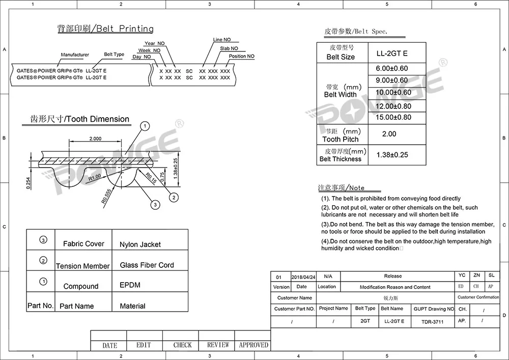 Номер моделиPOWGE GT2 LL-2GT E 2GT EPDM belt width 6mm-20mm