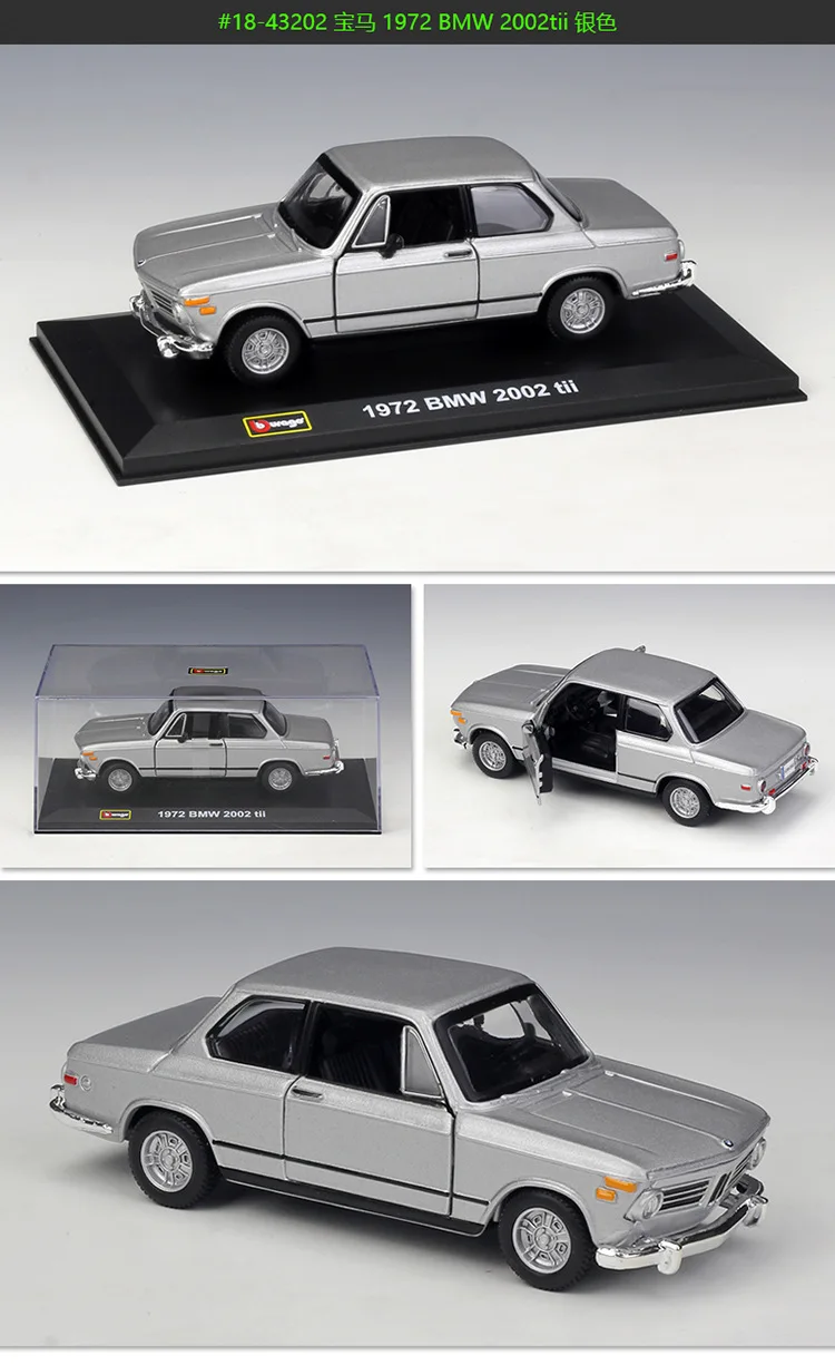 Масштаб Bburago 1:32, 1972, BMW 2002tii, литые автомобили из сплава, модель игрушечной коллекции, подарок