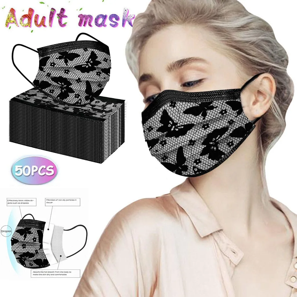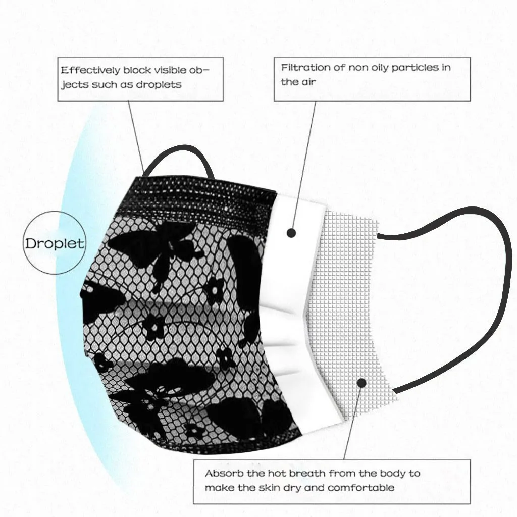 50 шт. кружевное Mascarillas женские модные одноразовые маски 3ply фильтр Защитная маска дышащая Mascarillas Higienicas Homologadas
