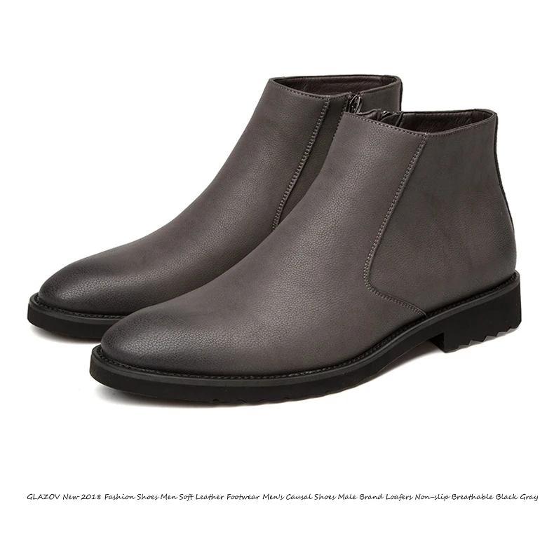 Модные тонкие простые мужские кожаные ботинки на молнии серые черны...