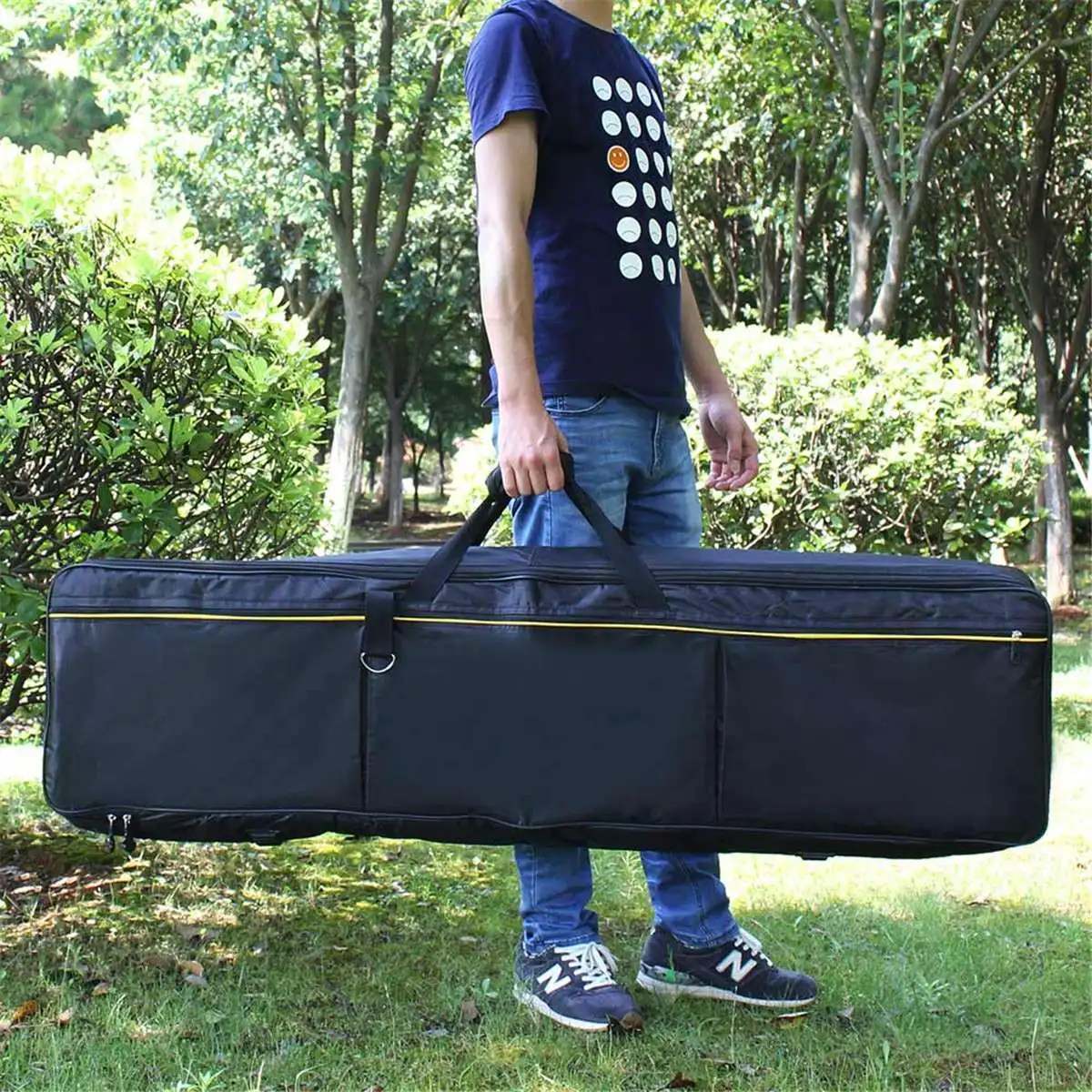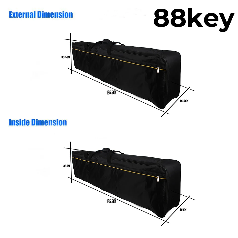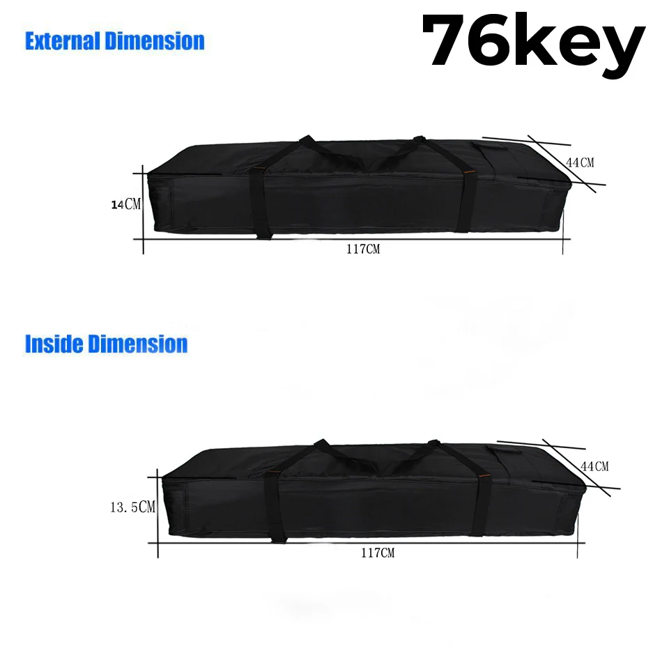 СпецификацияЦвет: черныйМатериал: холстРазмер сумки: как показано на рисункеПодходит для: 61/76/88-клавишная клавиатураДизайн сумки: ремешок для переноски сбоку, двойные плечевые ремни.