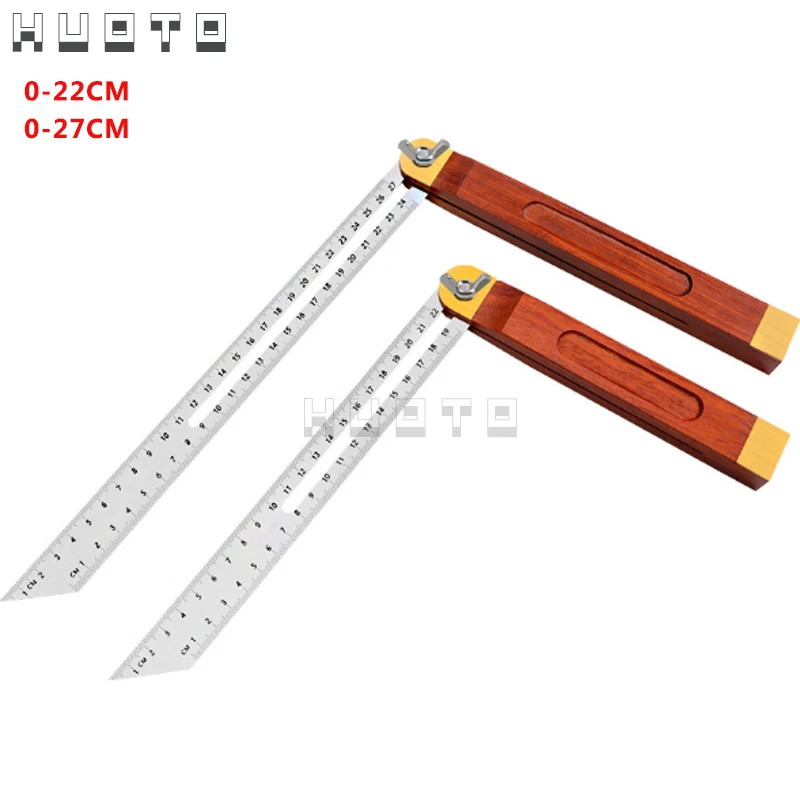 HUOTO 0-220-27 см скользящая угловая линейка T скошенная ручка из твердой древесины вращающаяся Инженерная линейка для деревообработки