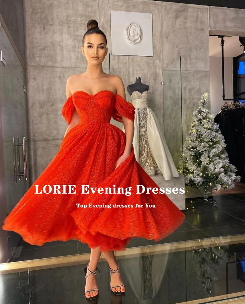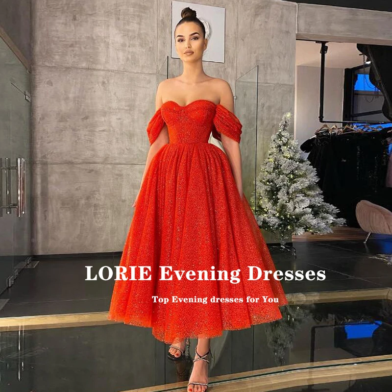 Блестящее платье до середины икры LORIE, красное платье с открытыми плечами для выпускного вечера, для свадьбы