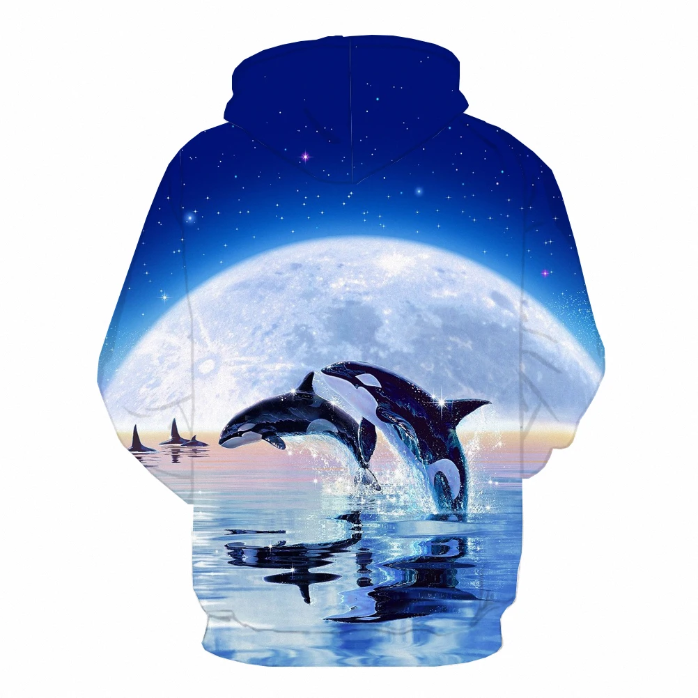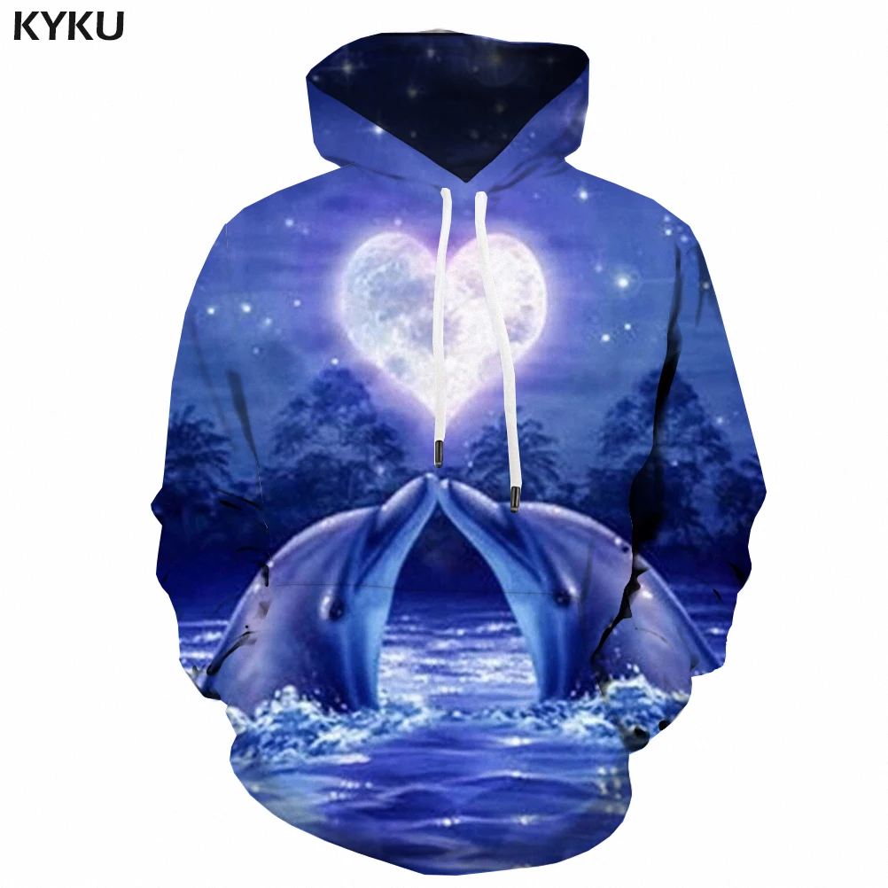 Толстовка мужская с длинным рукавом, свитшот с 3D-принтом дельфина, худи с галактикой, аниме, луна, с капюшоном, повседневный свитшот с принтом любви