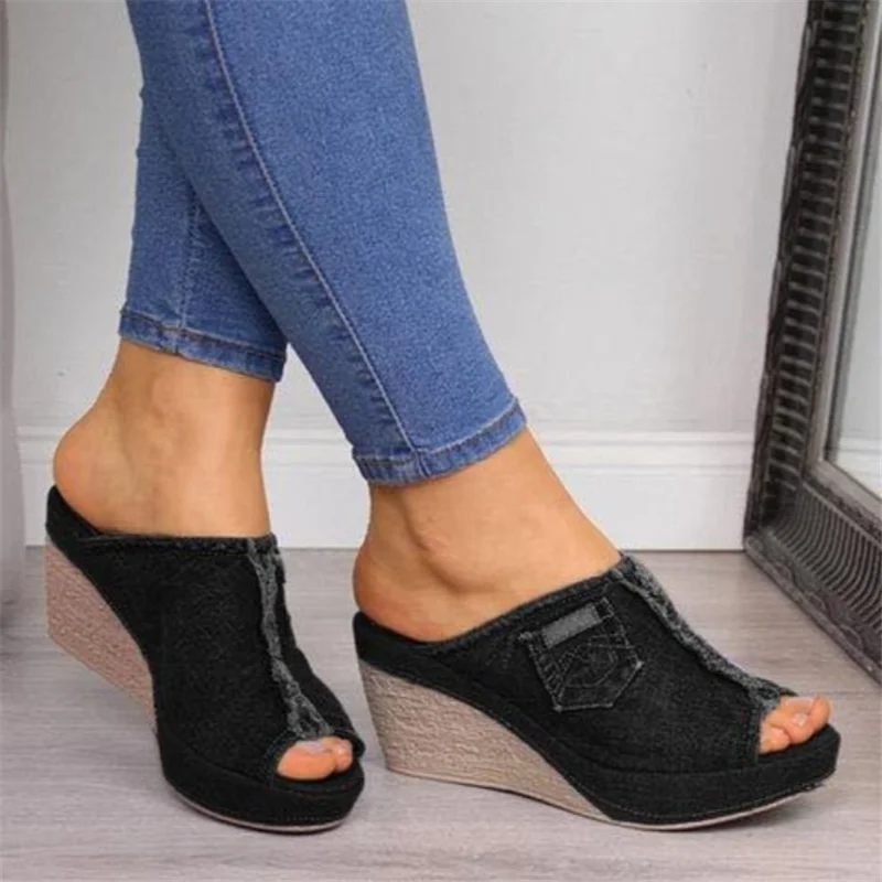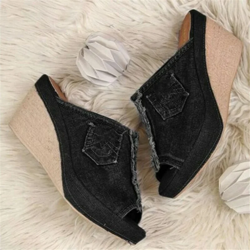 Женские джинсовые сандалии на танкетке, повседневные туфли с открытым носком, на высоком каблуке, летние сандалии, 2021