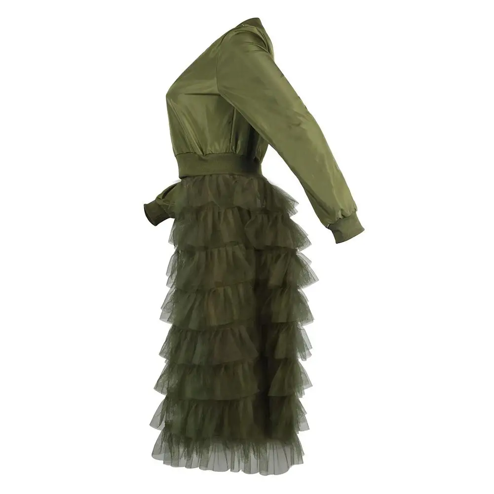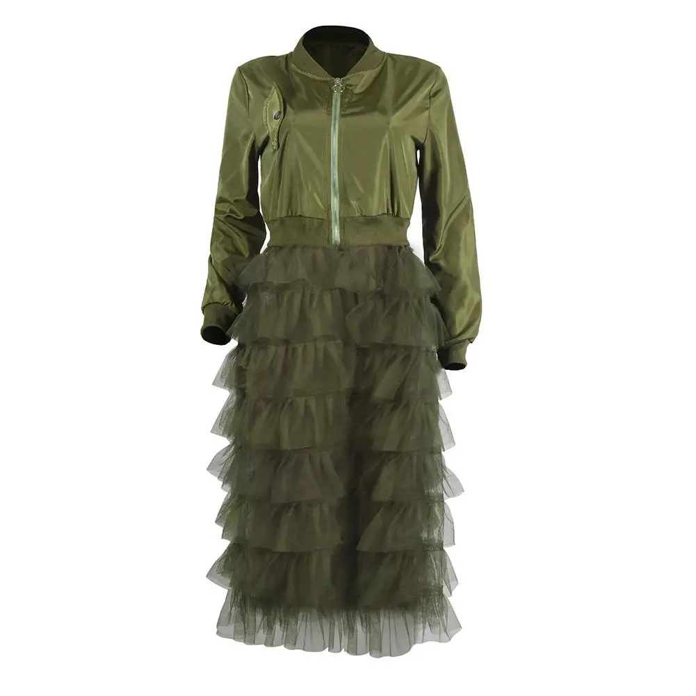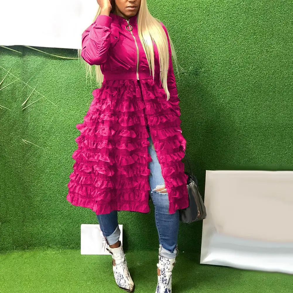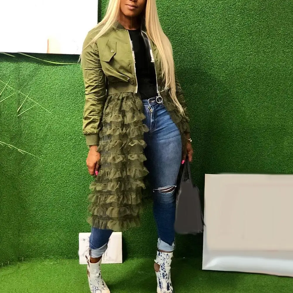 80% Лидер продаж!; Сезон осень; Модная женская куртка на молнии с длинными рукавами и кружевом; Сетчатая юбка миди платье пальто