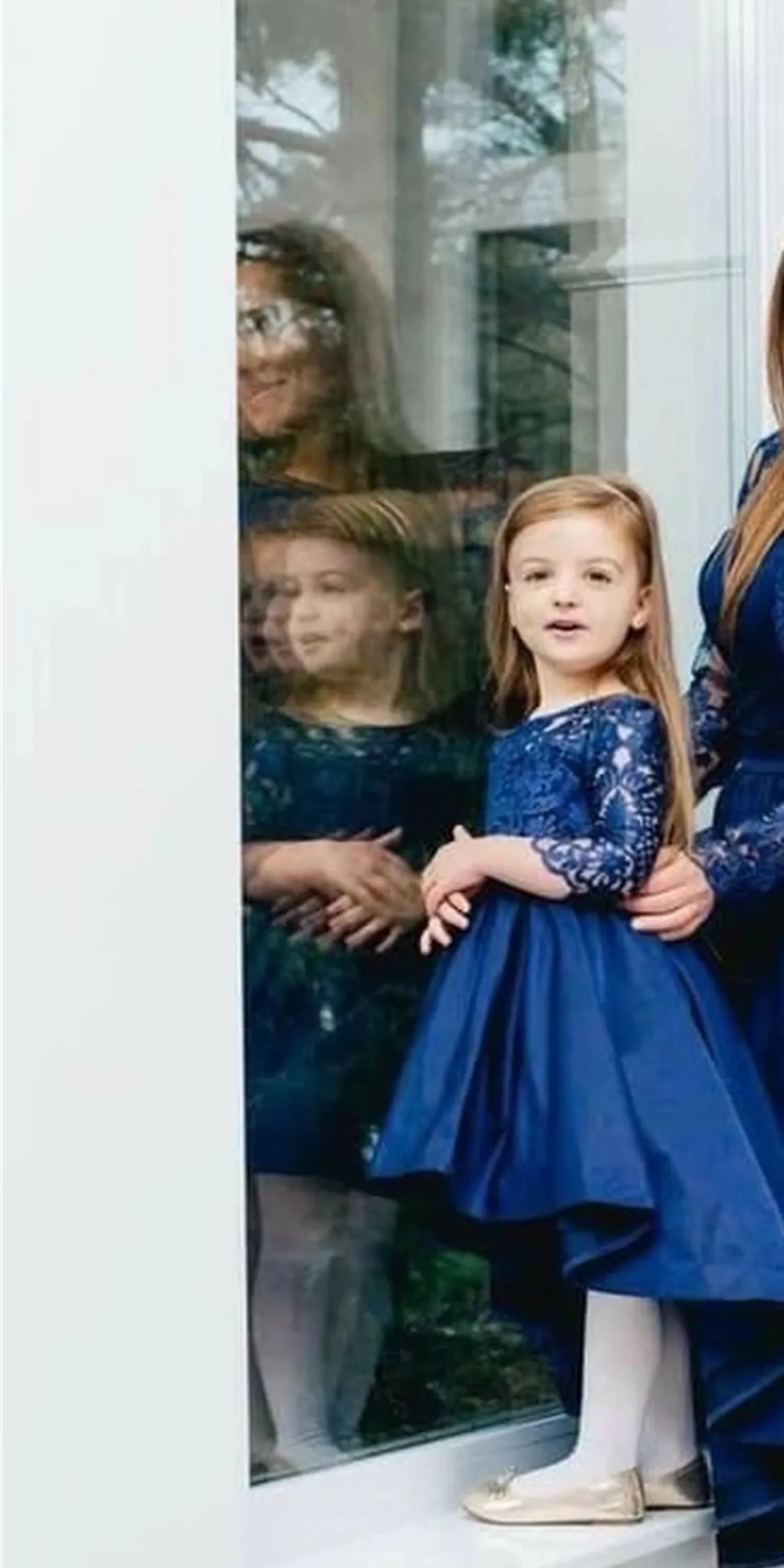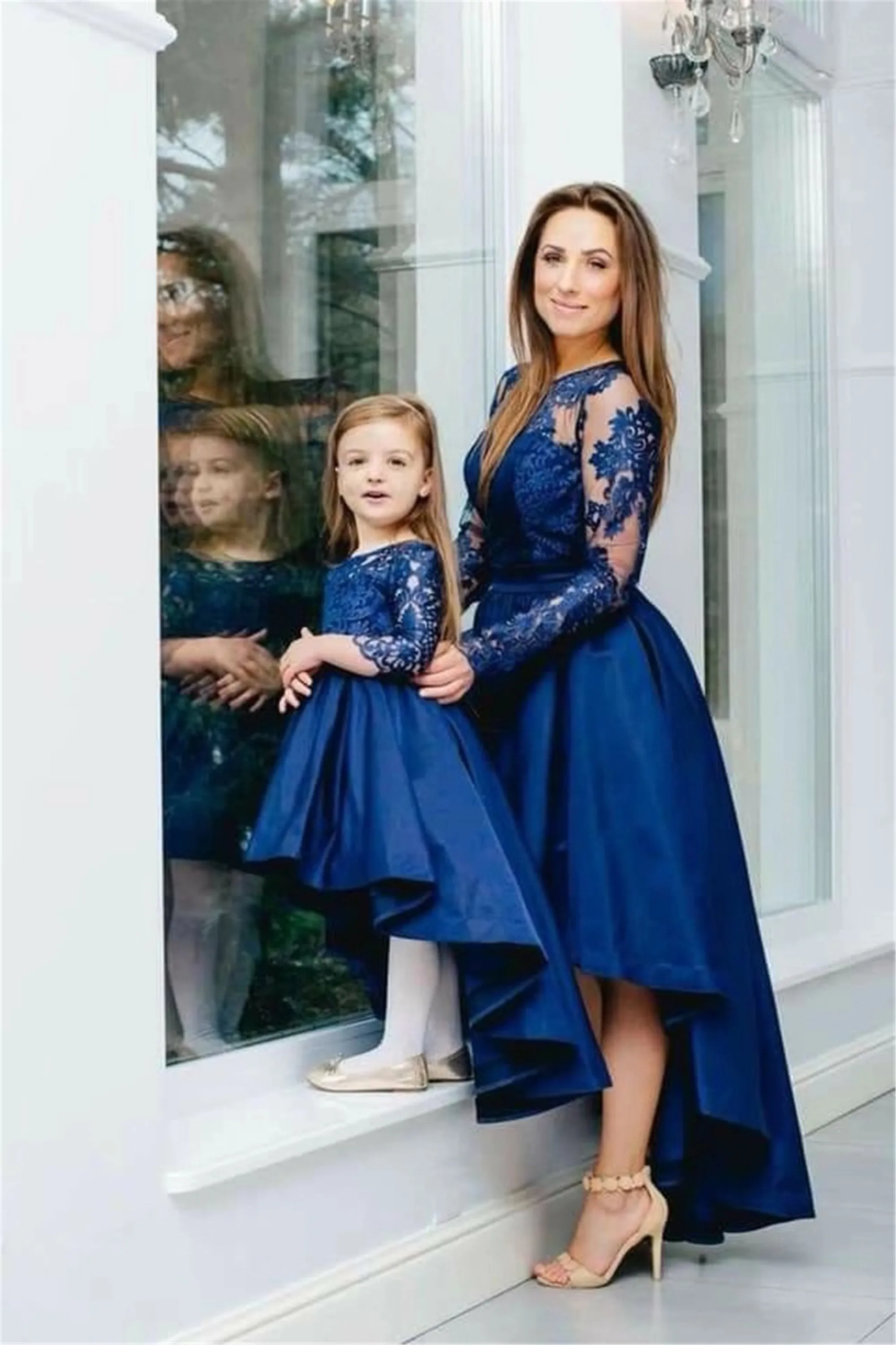 Кружевное вечернее платье с длинным рукавом, Королевского синего цвета, для мамы и девочки, подходящие платья, реквизит для фотографии, день рождения дочери
