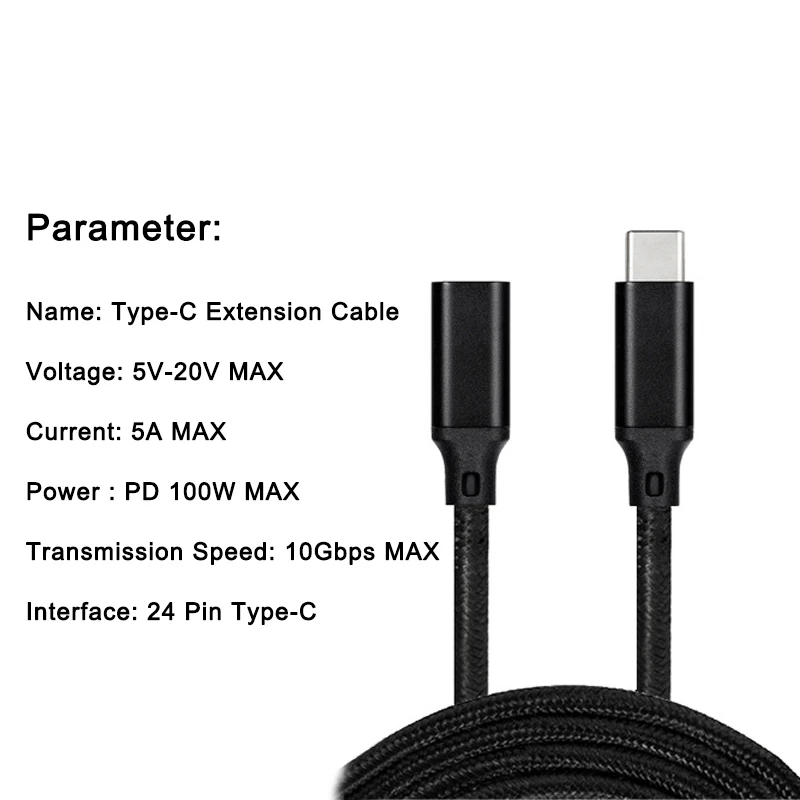 Удлинительный кабель USB3.1 Type-C, 100 Вт, PD 5A, 4K при 60 Гц, 10...