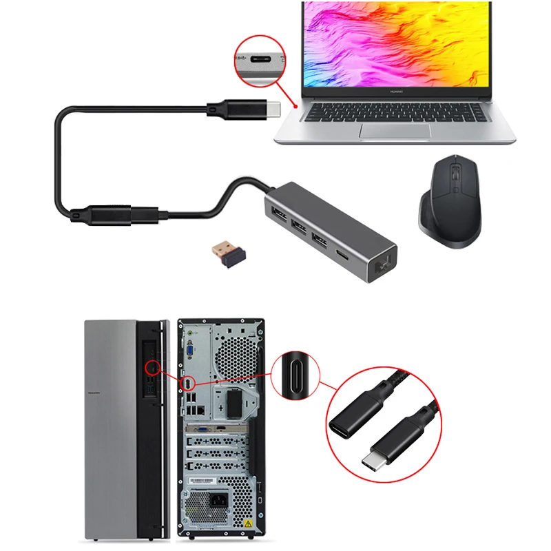 Удлинительный кабель USB C на колено 0,20,512 м, кабель-удлинитель ...