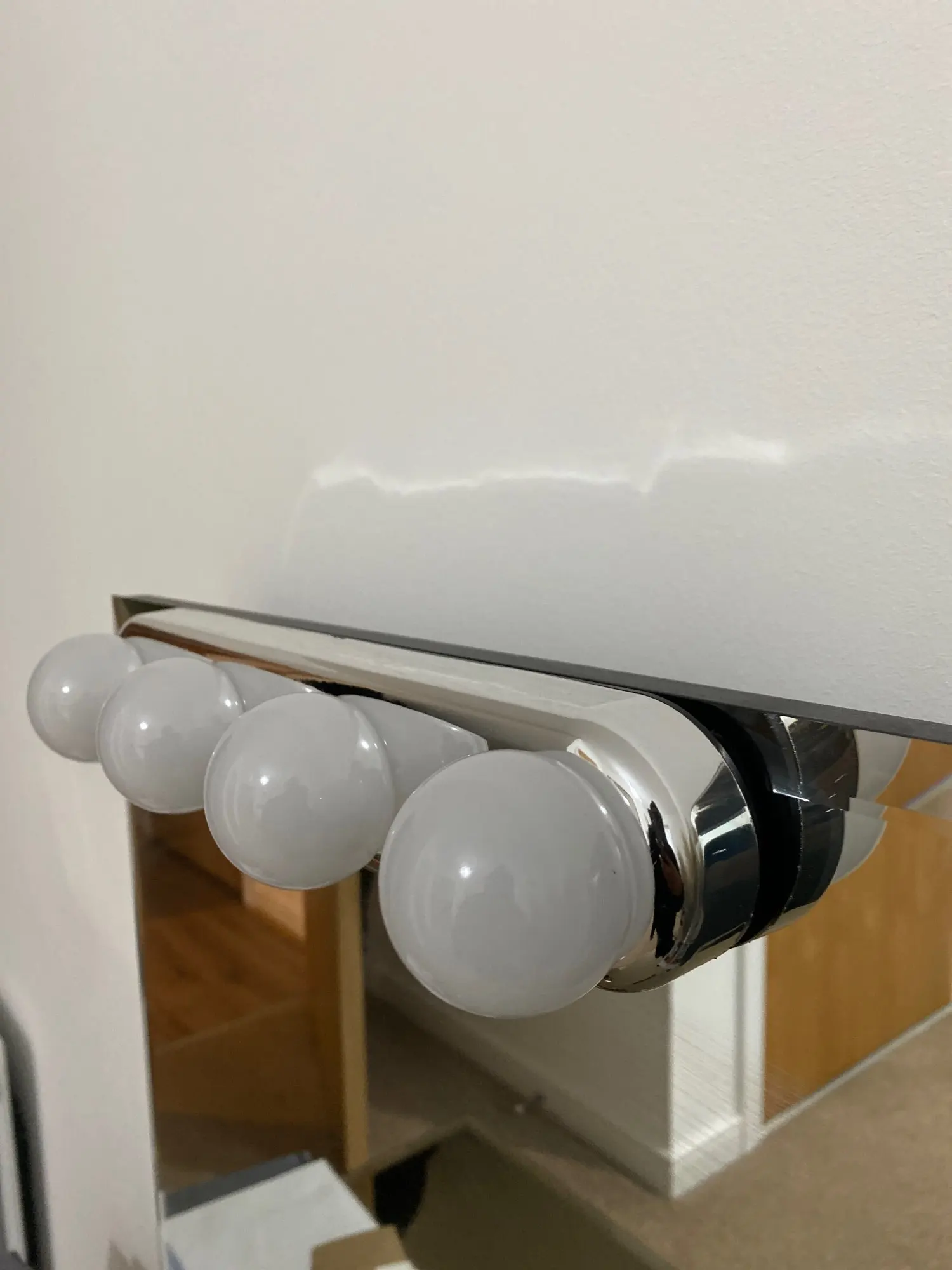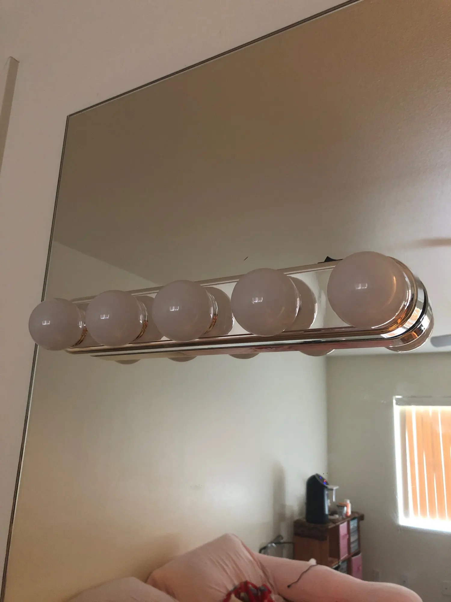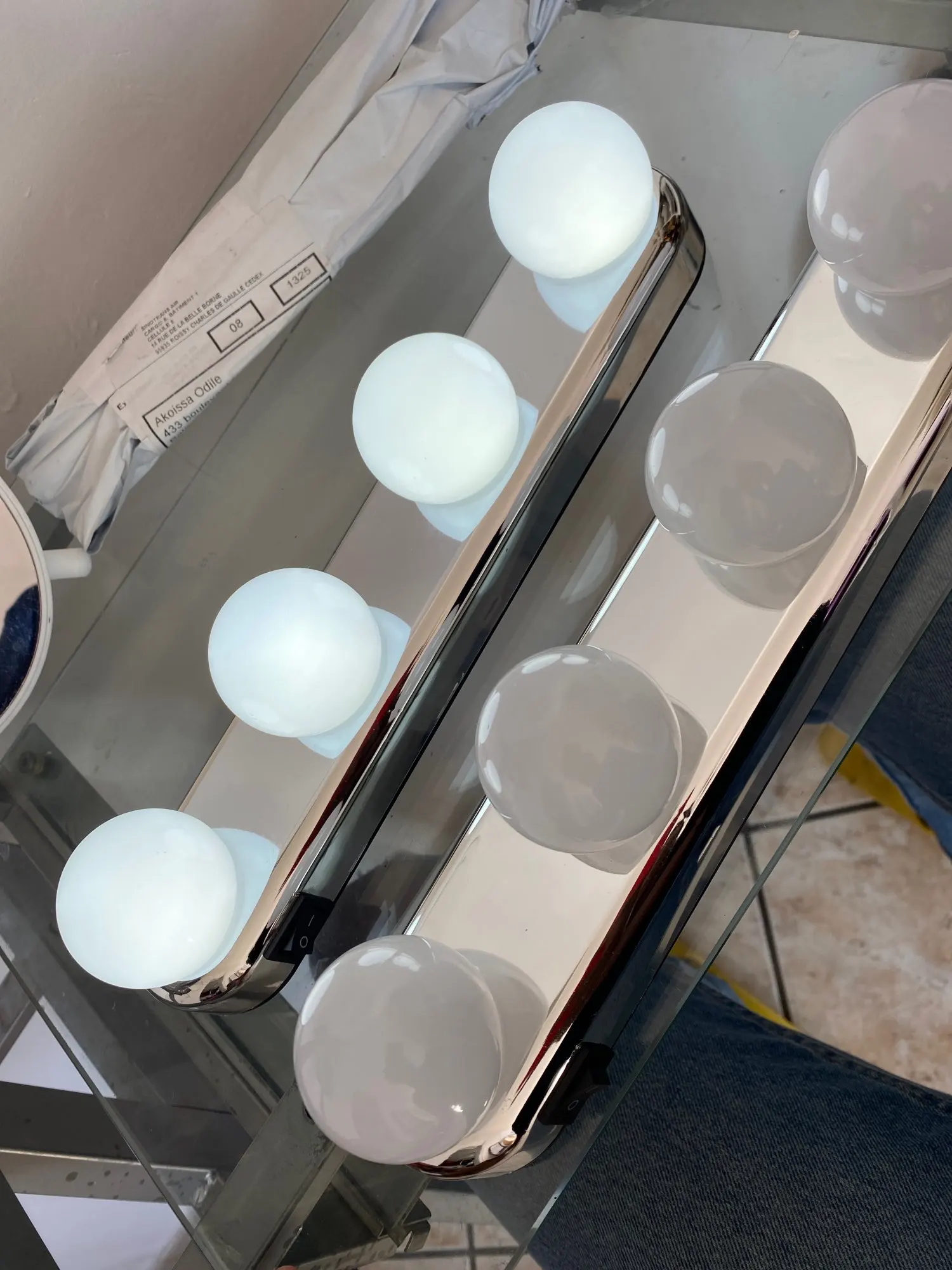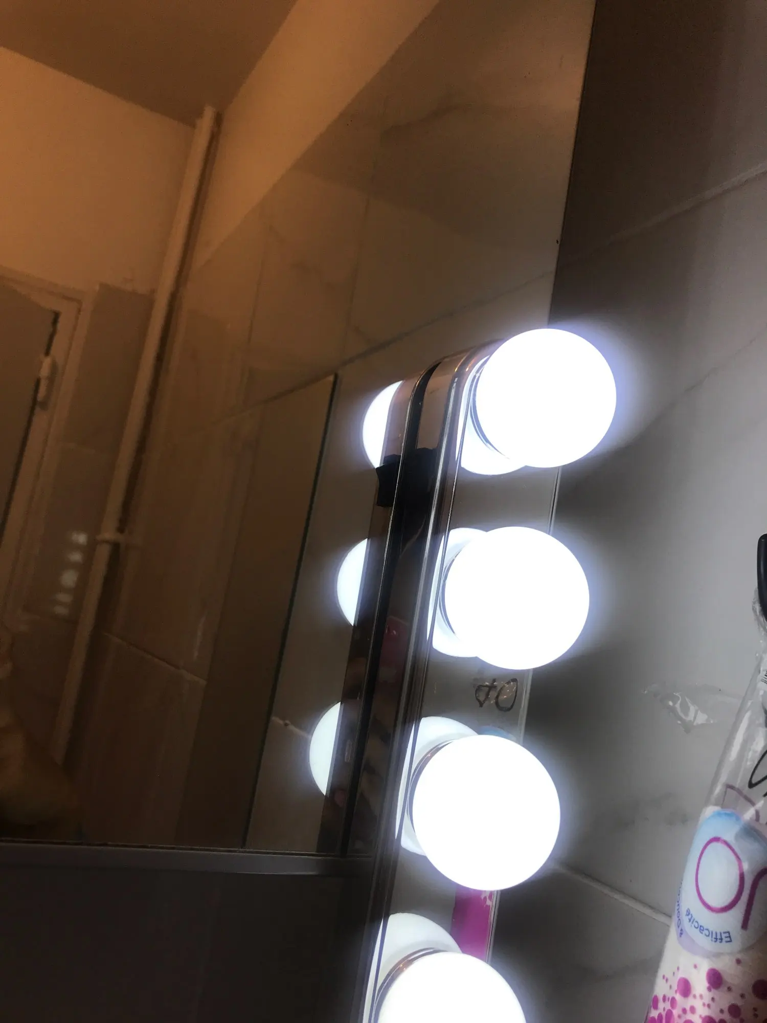 Он не освещает так сильно, как кажется... Хорошо прилипает к зеркалу, с присосками. Я хотел сделать это, но это не работает, это освещает меня больше, чем потолок, который есть. У меня 8 лампочек, то есть у вас есть идея того, что он освещает.