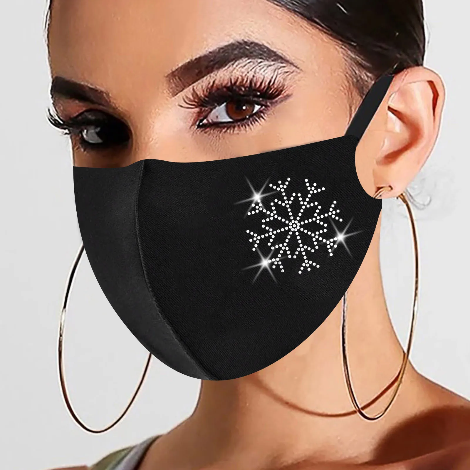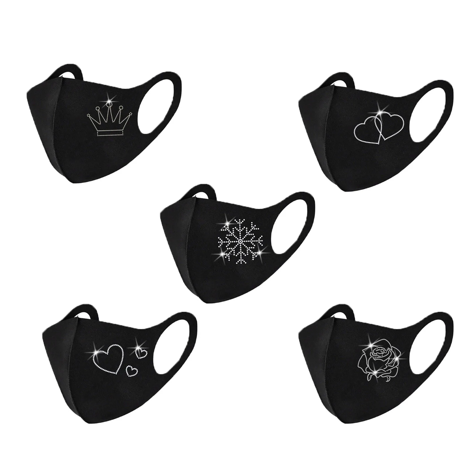 5 шт., женская модная маска с алмазным принтом, Рождественская маска для лица, черная хлопковая Тканевая маска для защиты от вирусов
