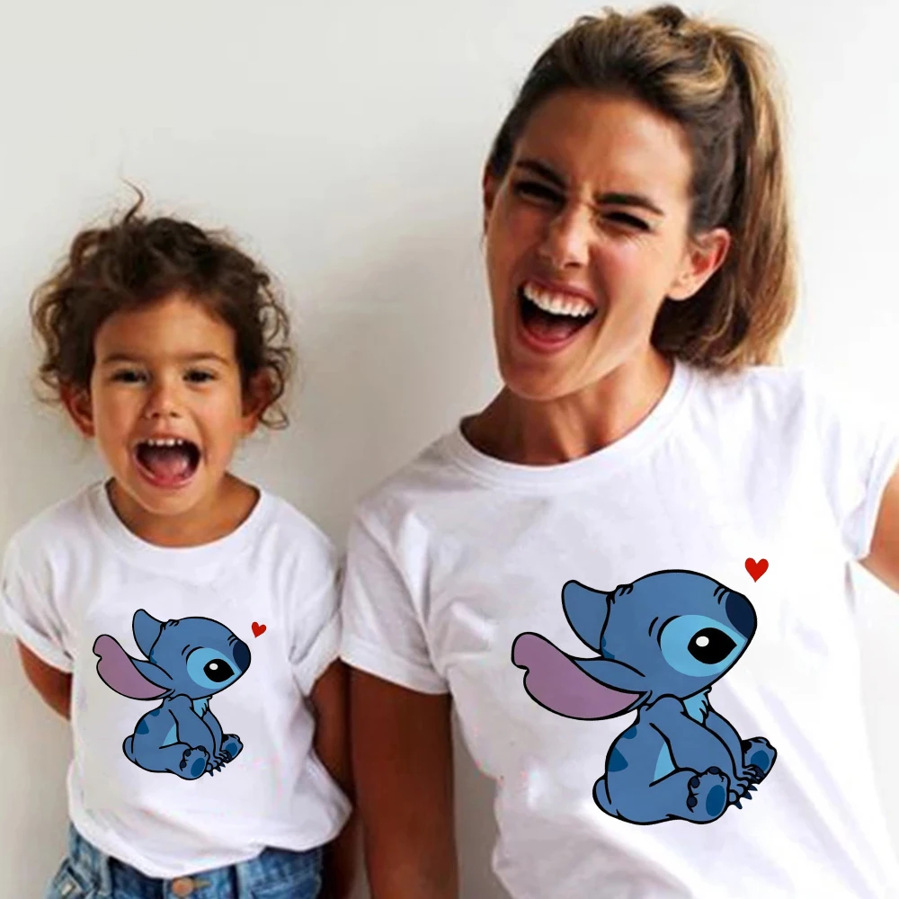 Модные футболки с принтом Лило и Ститч, Детская футболка с забавным мультяшным принтом, Милая футболка, Повседневная футболка, семейная Одинаковая одежда