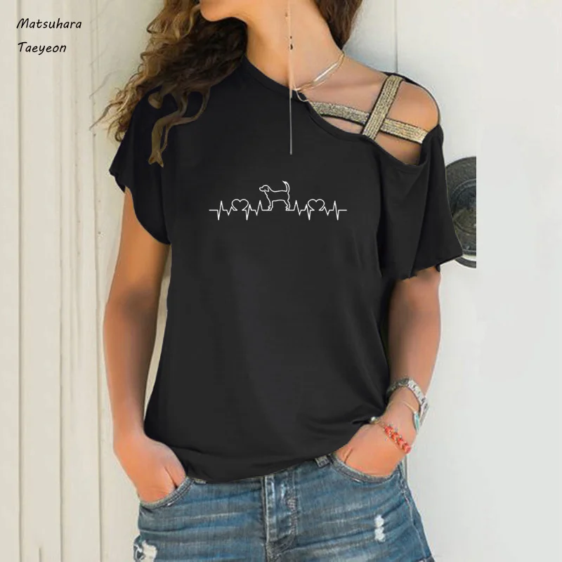 Женская футболка с графическим принтом, модная футболка с рисунком собаки и сердечного ритма, одежда, повседневные футболки, топы, женская футболка с коротким рукавом