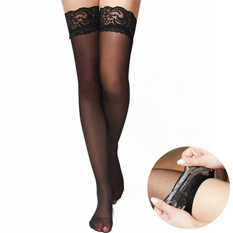 Пикантные Для женщин силиконовые Чулки кружевной топ, который не скользит, высокие чулки трикотаж колготки женские эластичные чулки размера плюс