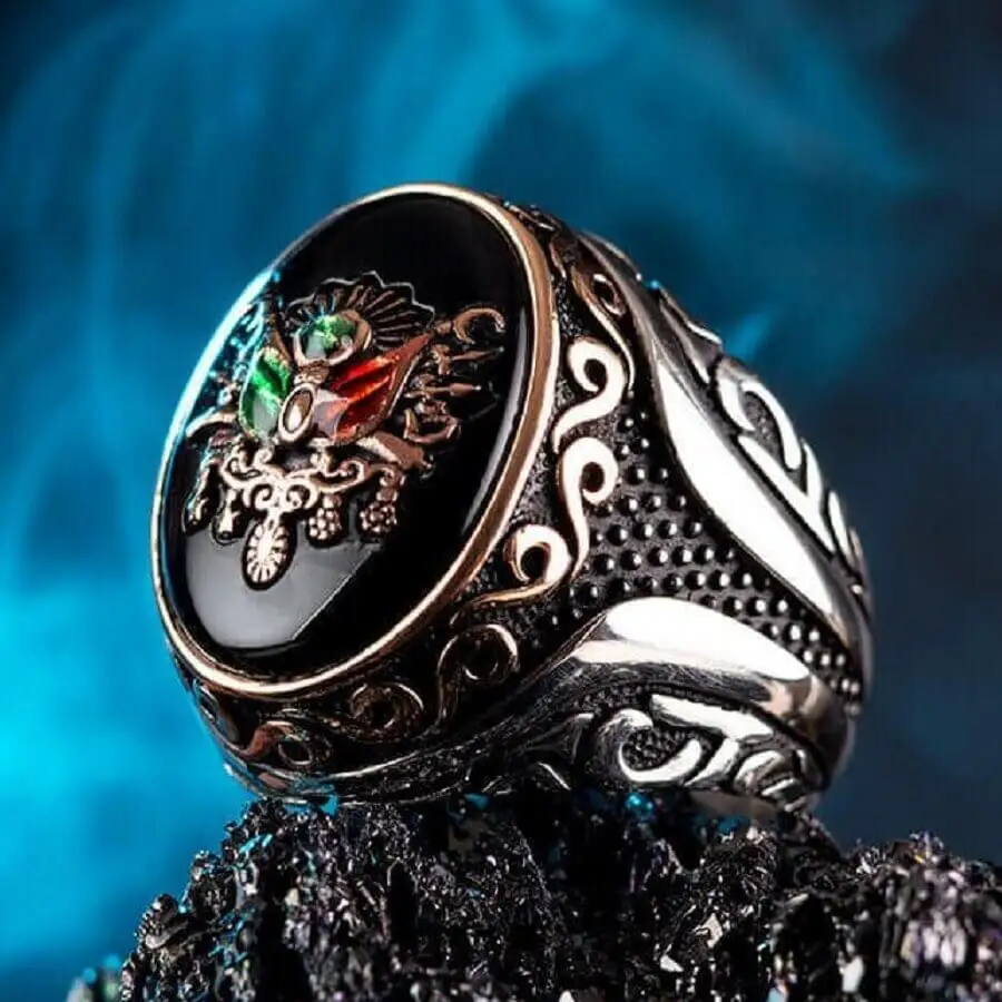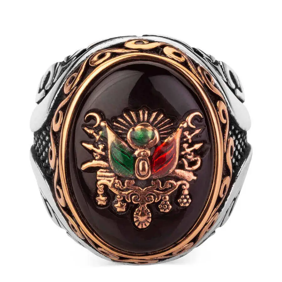 Овальное мужское кольцо, османское кольцо в стиле герба, винтажное мужское ювелирное изделие ручной работы, Сделано в Турции