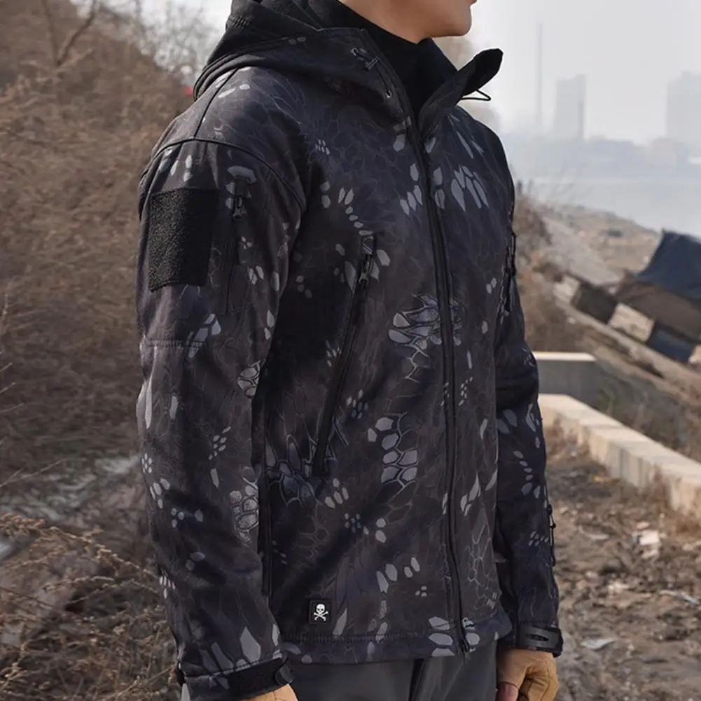 80% Лидер продаж! Для мужчин с длинным рукавом камуфляжного цвета с толстой молнией, зимние ботинки с защитой от ветра ветрозащитный капюшон куртка пальто
