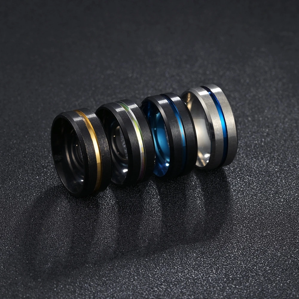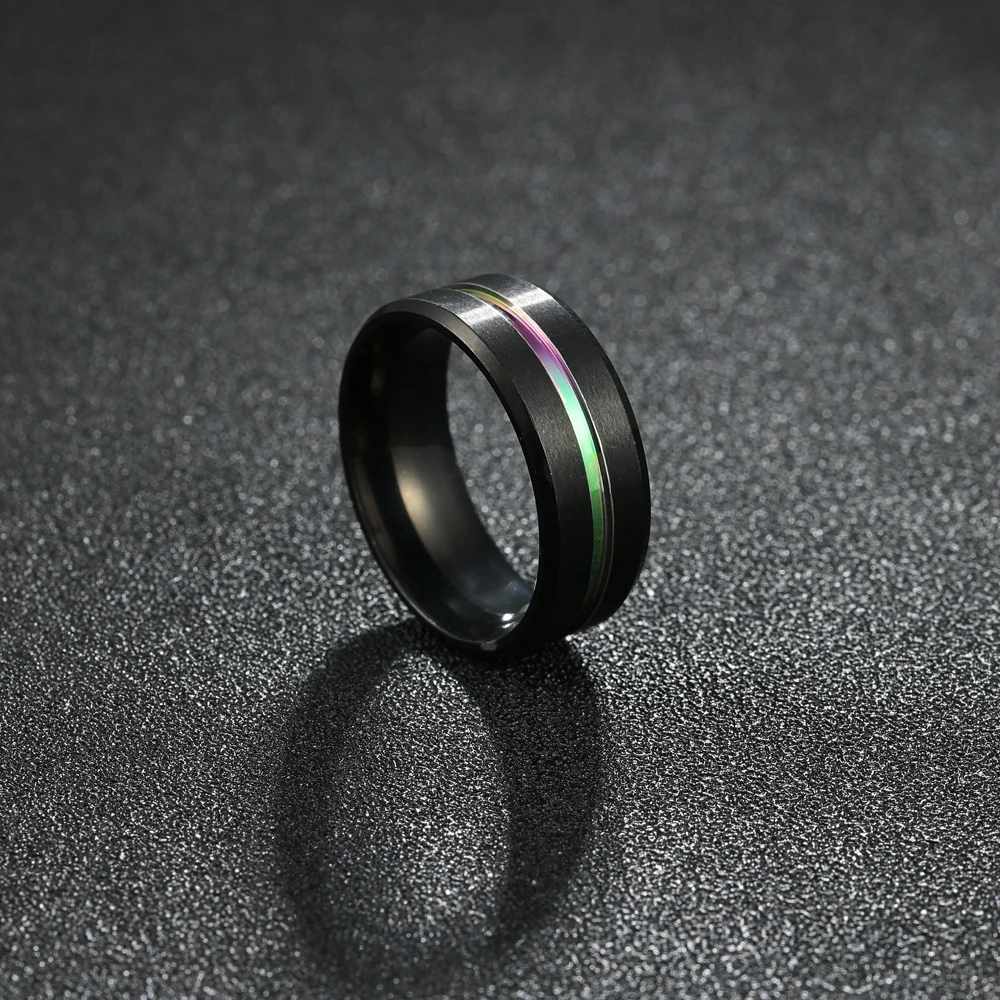 Мужскоеженское кольцо из нержавеющей стали, черное обручальное кольцо с радужным узором, 8 мм, повседневное, 2021