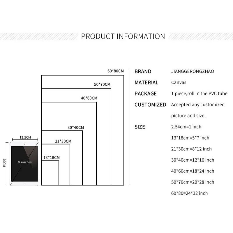 Size21x30cm,30x40cm,40x60cm,50x70cm,60x80cm, or contact us customized