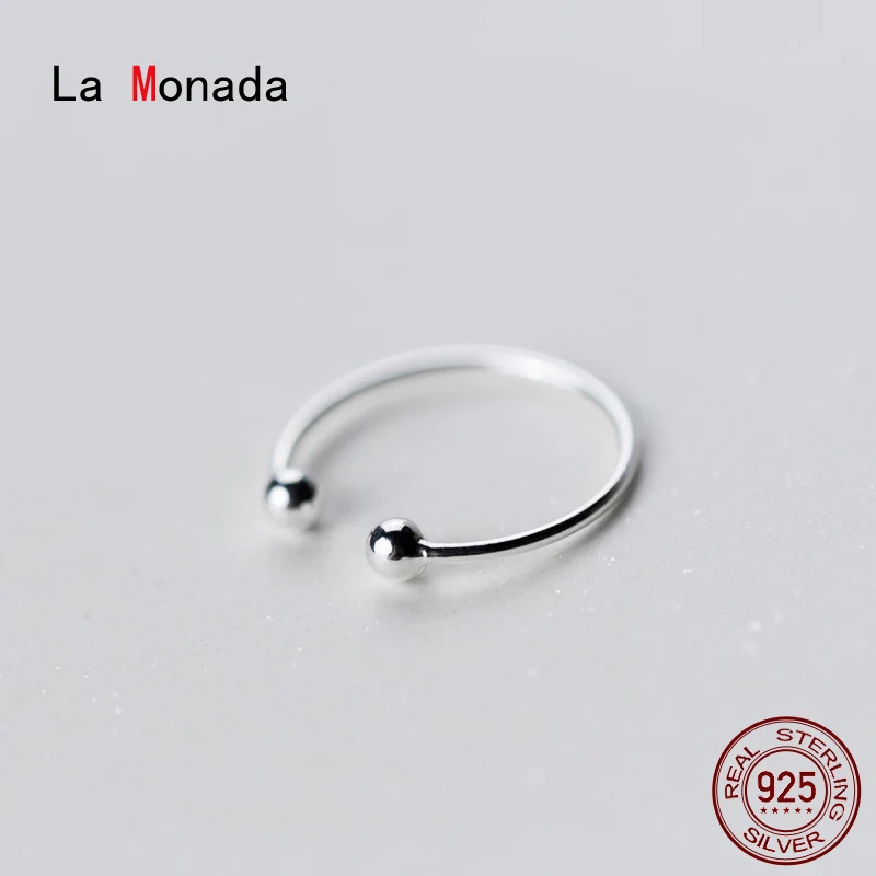 Кольцо La Monada 46-50 мм женское, модное кольцо из настоящего серебра 925 пробы для девушек, минималистичное кольцо с шариком, регулируемое на половину пальца