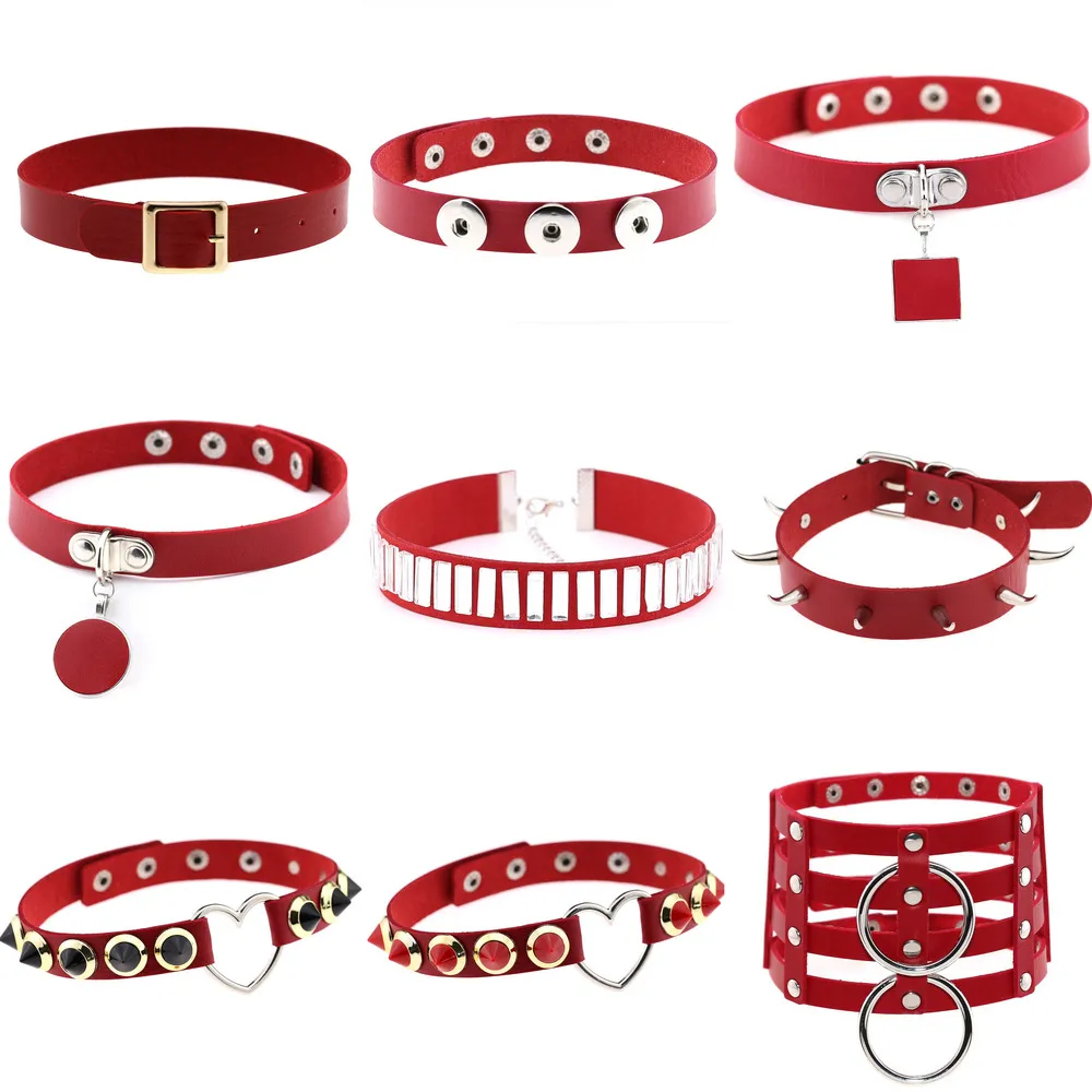 16 цветов O-Round Punk Rock готический Женский Мужской кожаный ожерелье-чокер с заклепками и воротником-гвоздиком для девушек эффектное готическое ювелирное изделие