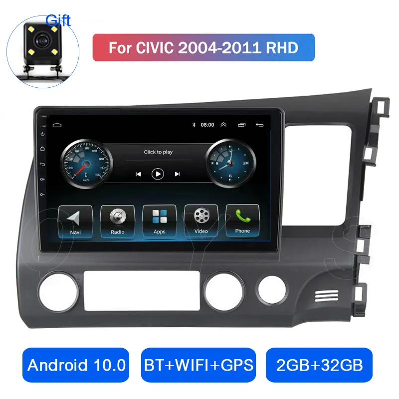 Андроид 10 4 ядра для Honda Civic 2004 2005 2006 2007 2008 2009 2010 2011 RHD большой экран, независимо от того, GPS навигатор машина Все-в-одном
