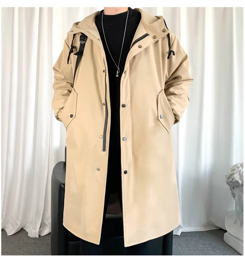 2021 весеннее длинное Стильное мужское пальто высокого качества Повседневный Тренч, повседневные мужские куртки с капюшоном, мужская одежда ветровки FY09
