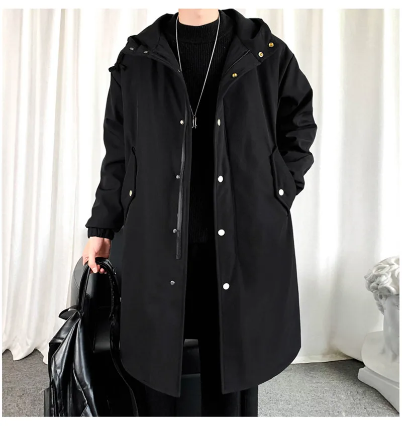 Уличная одежда, черные куртки, мужское длинное пальто с капюшоном, ...