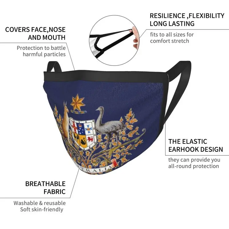 Австралийская маска для лица с гербом, маска против смога для взрослых с национальным символом, защитная маска, моющийся респиратор, маска