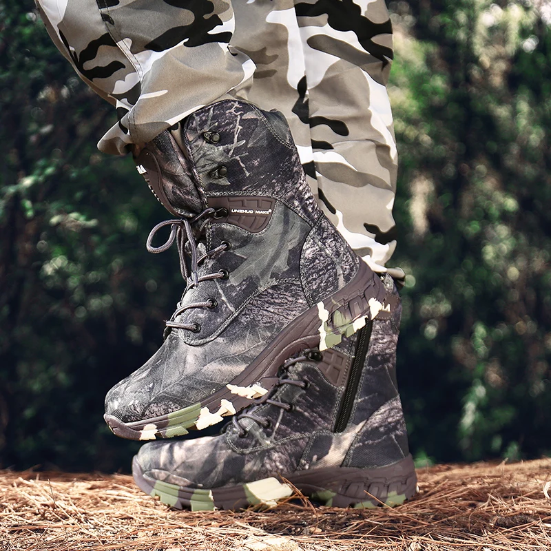 Мужские тактические ботинки из водонепроницаемого материала в стиле милитари; Камуфляжная Маскировка; Уличные охотничьи ботинки для мужчин; Размер 47; Треккинговые ботинки до середины икры