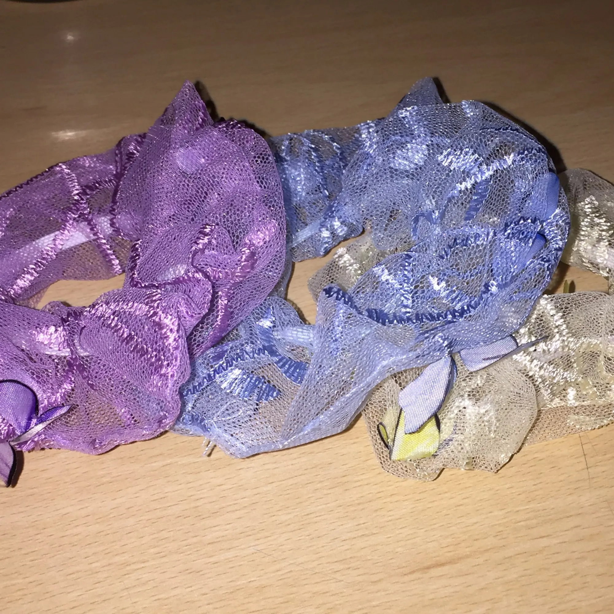 Брала рублей за 30, помню скидка была. Шла резиночка очень долго, но так всегда бывает с мелочевкой на Али. Цвет красивый, переливается. В зависимости от освещения кажется то синим, то фиолетовым. По сути это просто бельевая резинка, покрытая блестящей органзой, причем резинку довольно хорошо видно. Учитывая это, выглядит не слишком эстетично, но за такую цену нормально UwU
