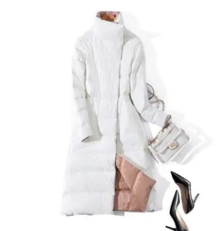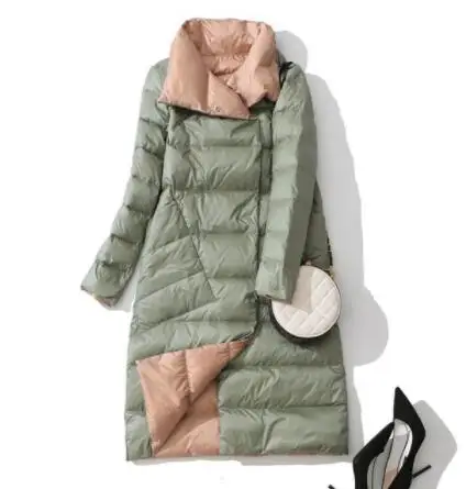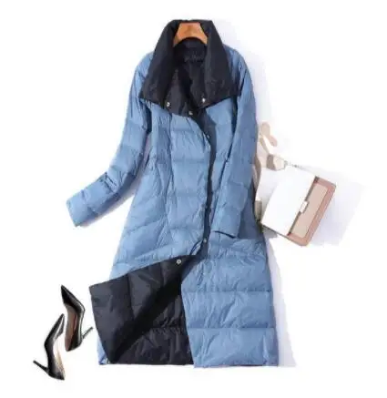 Пуховик женский двухсторонний, на утином пуху, длинный, 2021