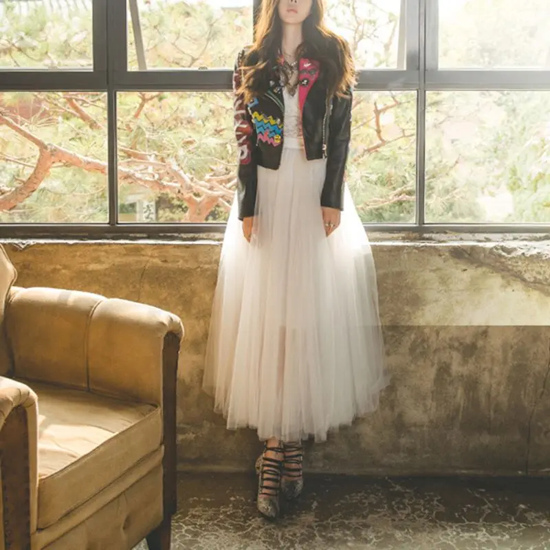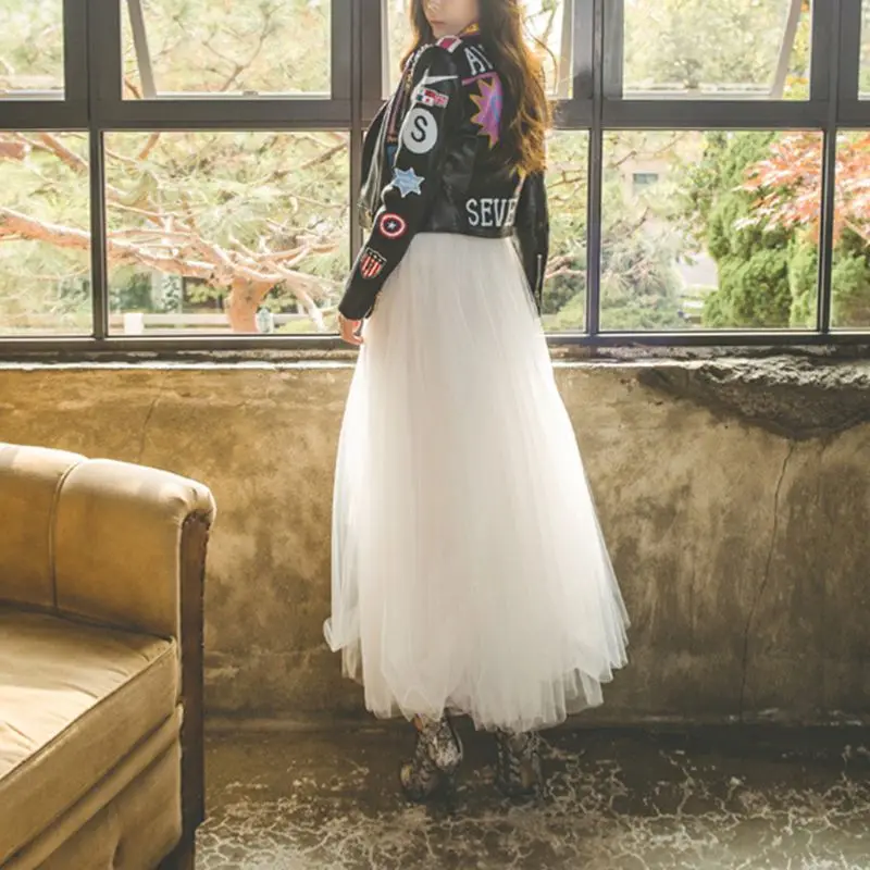 Модная Тюлевая юбка для женщин, эластичная длинная трехслойная сетч...