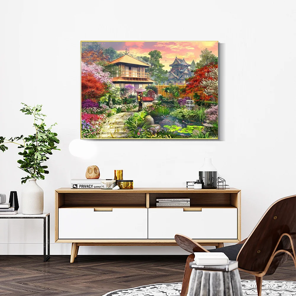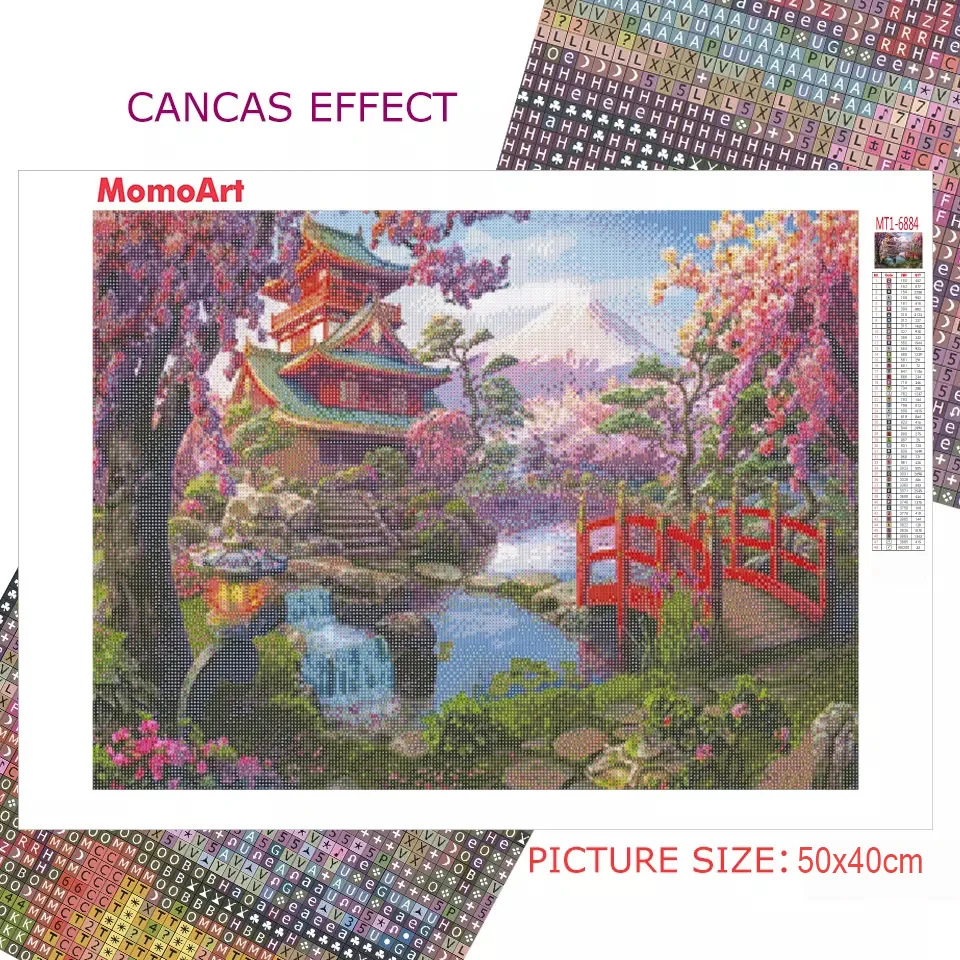 MomoArt Алмазная вышивка дом 5D DIY Алмазная мозаика Цветение вишни алмазная картина пейзаж картины стразами полная выкладка подарок ручной работы Украшение дома