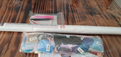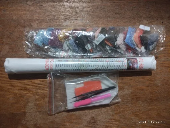 Посылка шла 2 месяца ввиду того, что она была возвращена по каким-то причинам продавцу. И тот высылал повторно. Упаковано было как обычно в почтовый пупырчатый пакет. Полотно намотано на валик и запаяно в целлофан. Стразы все на месте, инструмент также на месте. Спасибо продавцу!