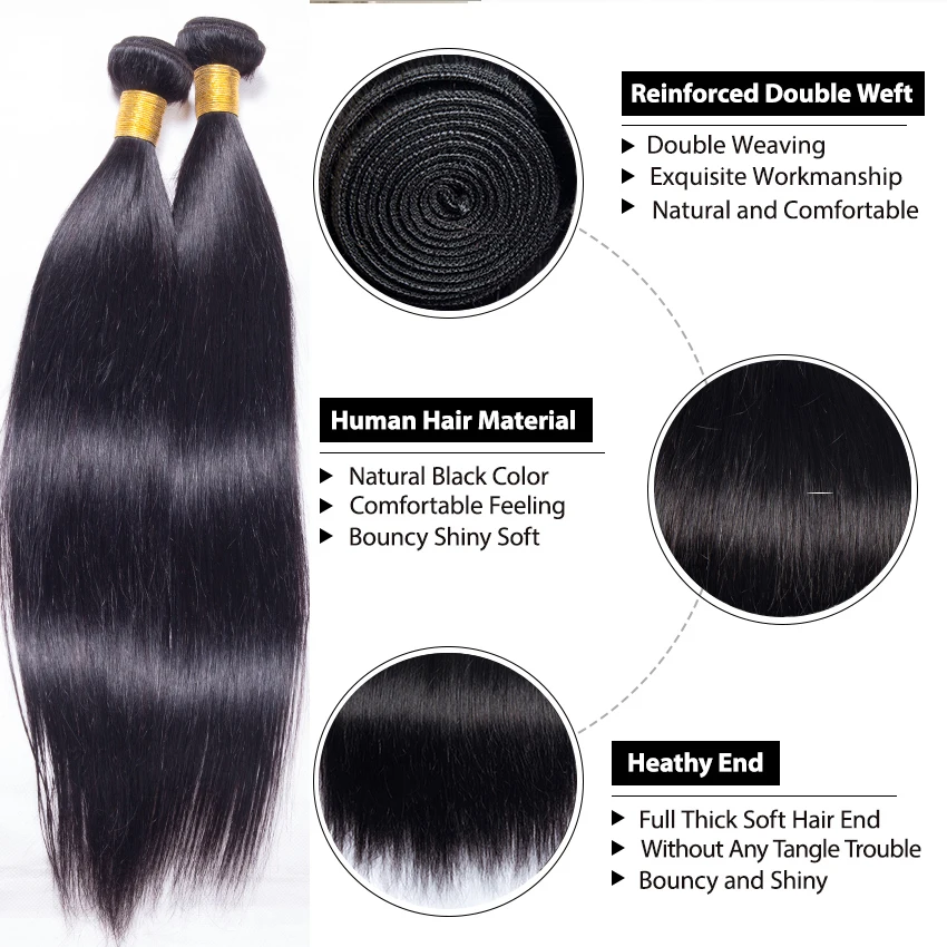 Пряди прямых волос с застежкой 5x5, Прозрачная Кружевная Фронтальная застежка с пряди бразильских волос Lemoda Реми, наращивание