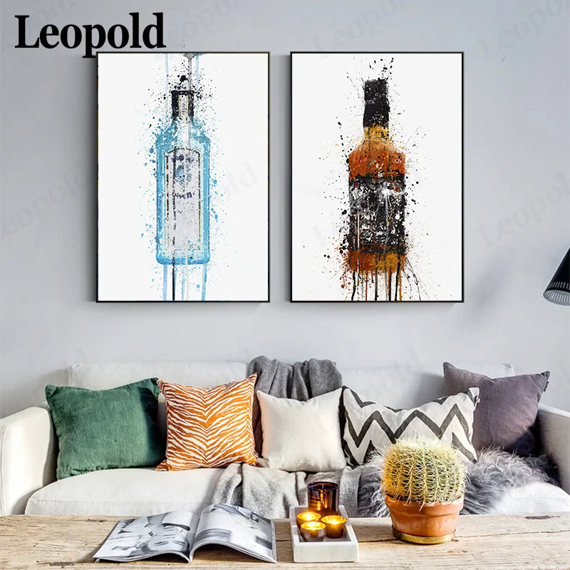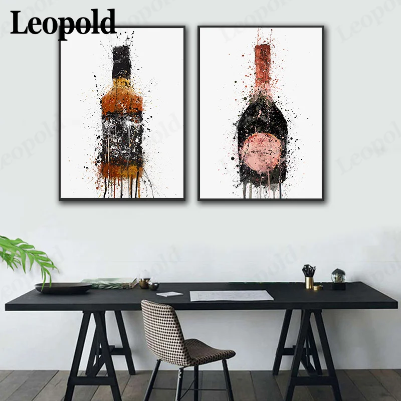 Современный модный постер на холсте с изображением винной бутылки, скандинавский абстрактный перелив винной бутылки, живопись, роспись, декор для гостиной и кухни