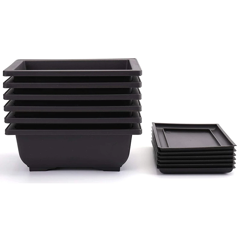 Горшки Бонсай из 6 предметов-классический глубокий влажный поднос со встроенной сеткой-для растений, цветов, трав, пластиковых квадратных Горшков