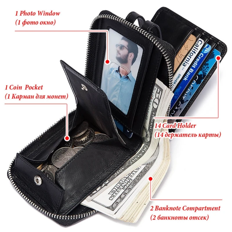 ● Отличный дизайн: неподвластный времени и безопасный, наш мужской кошелек из натуральной кожи с застежкой-молнией создает идеальную среду для некоторых ваших самых дорогих вещей
